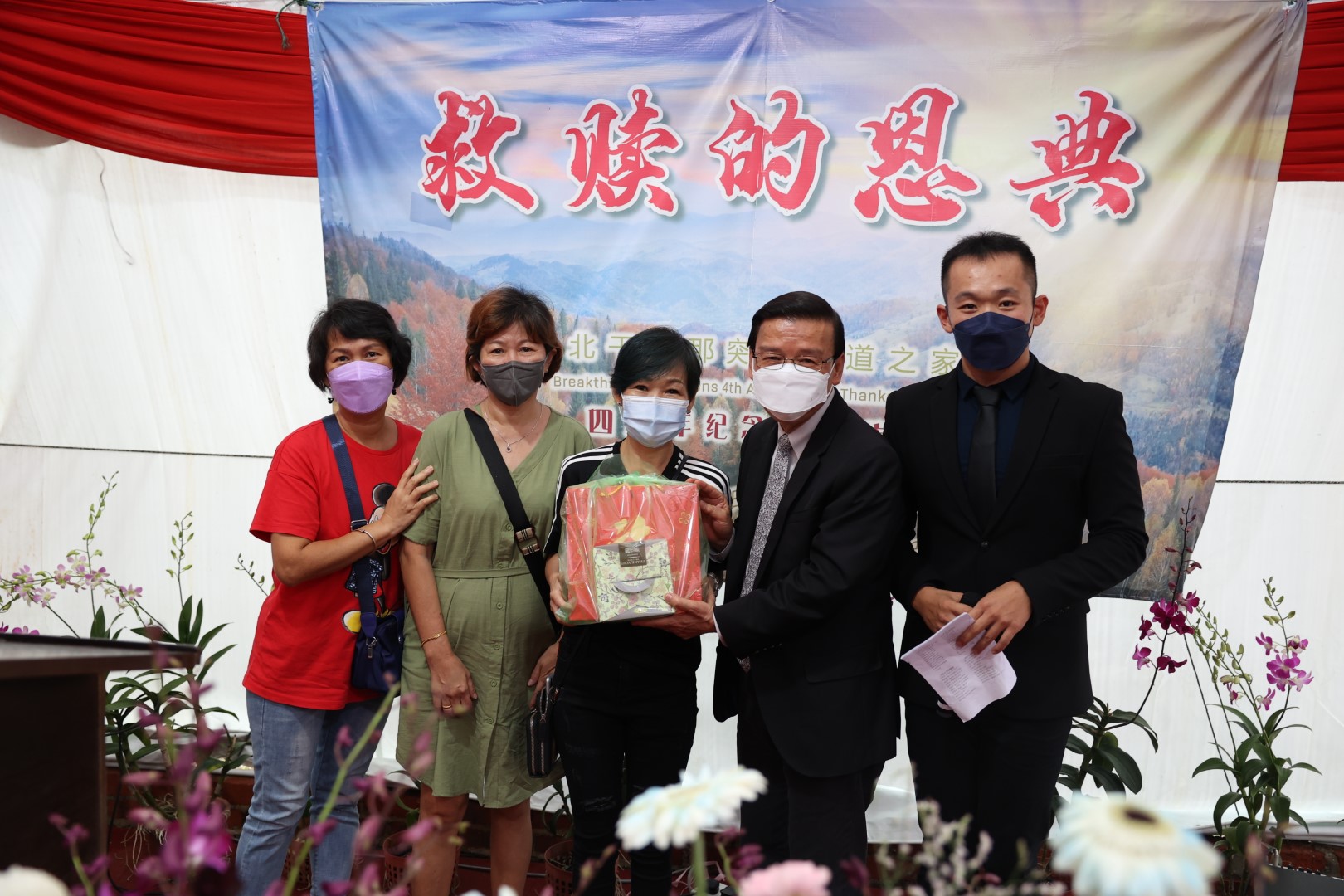 当天的来宾,除了北干突破弟兄的家人、教会圣道堂的执事和弟兄姐妹,还有从新加坡前去献诗的突破诗歌班、同工、突破妈妈团契和《过来人团契》的弟兄姐妹总共约有400多人出席。